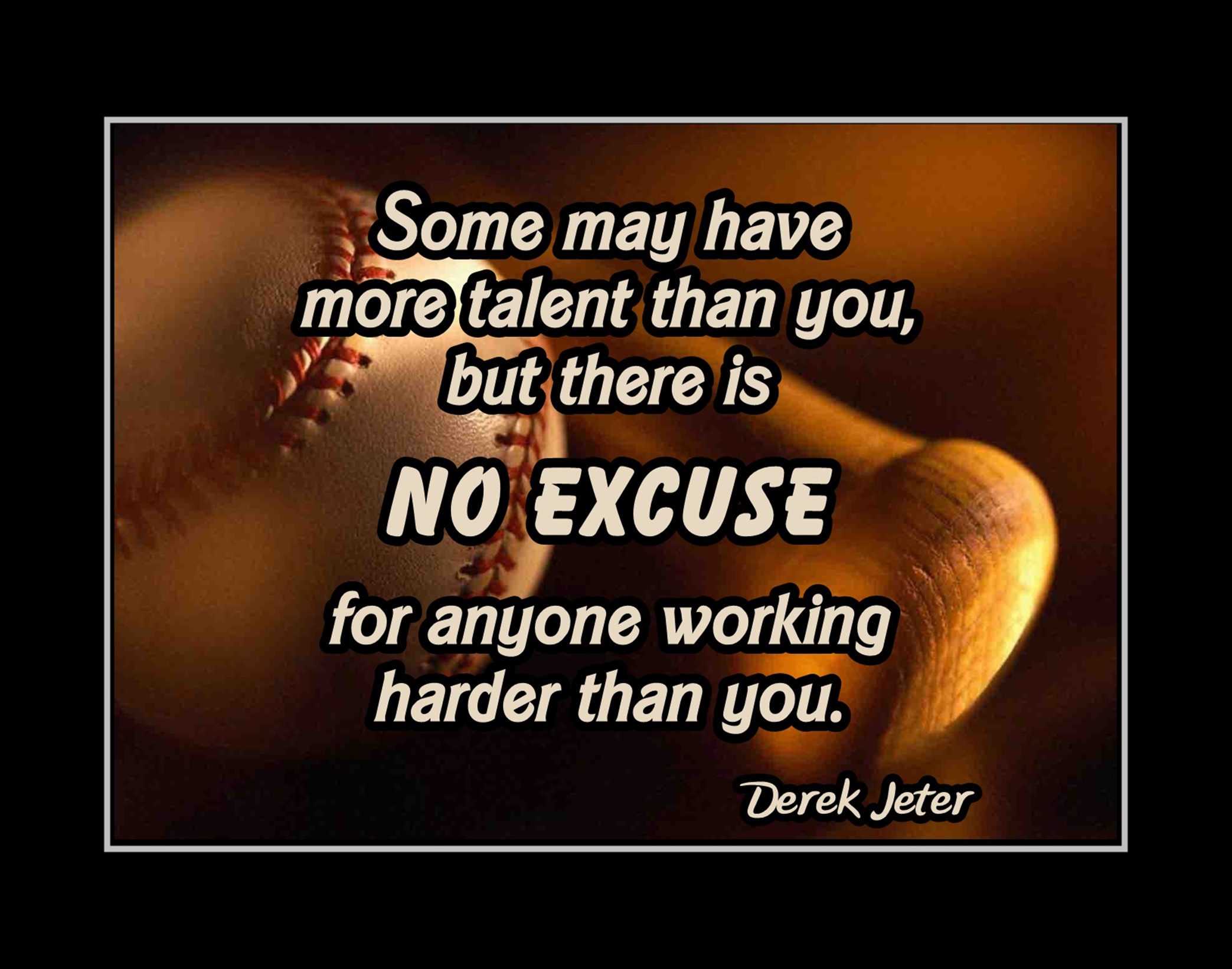 Inspirational Baseball Motivation Quote Poster Derek Jeter Wall Art Gift "NO Excuse"