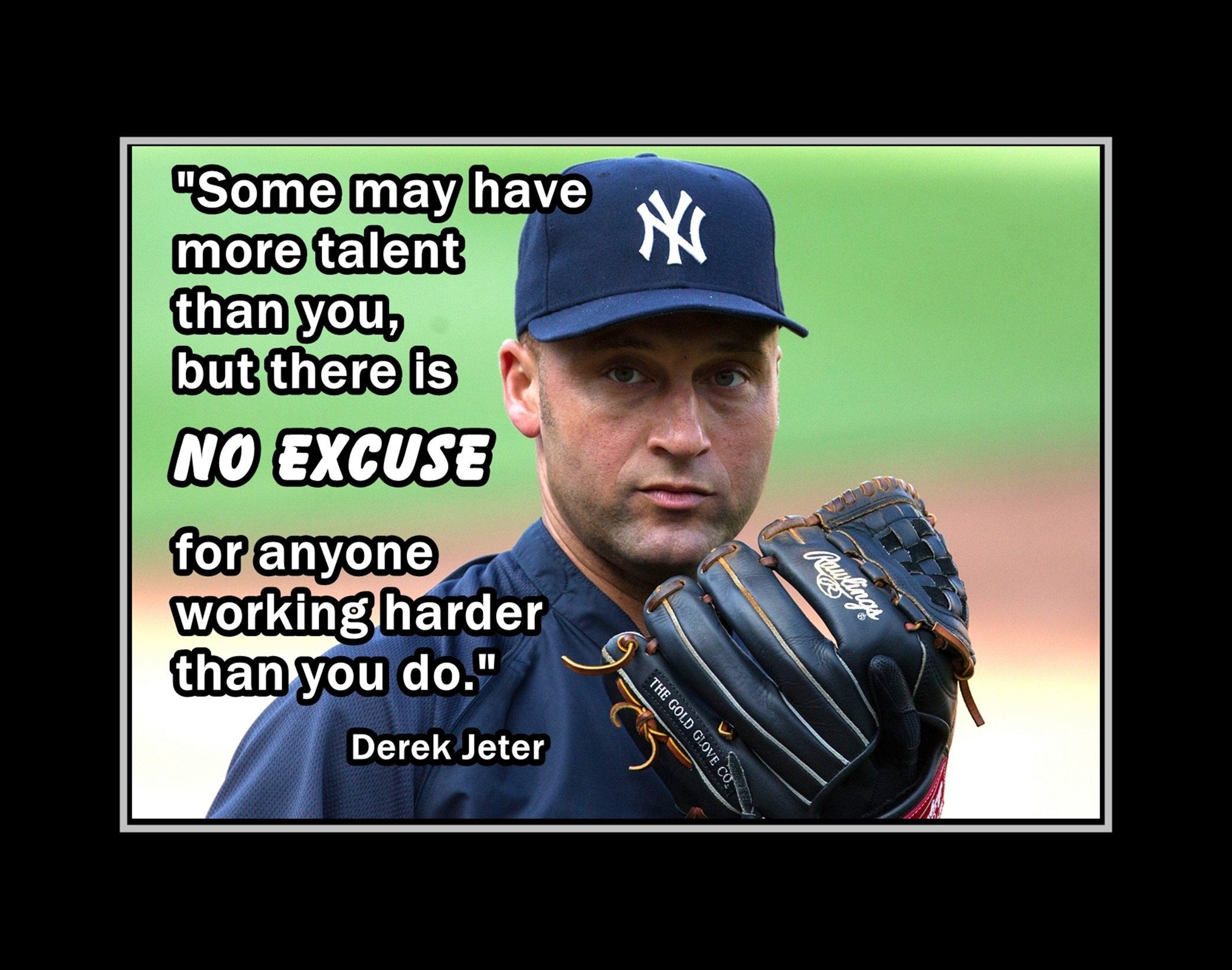 Derek Jeter "NO Excuse" Inspirational Baseball Motivation Quote Poster Wall Art Gift