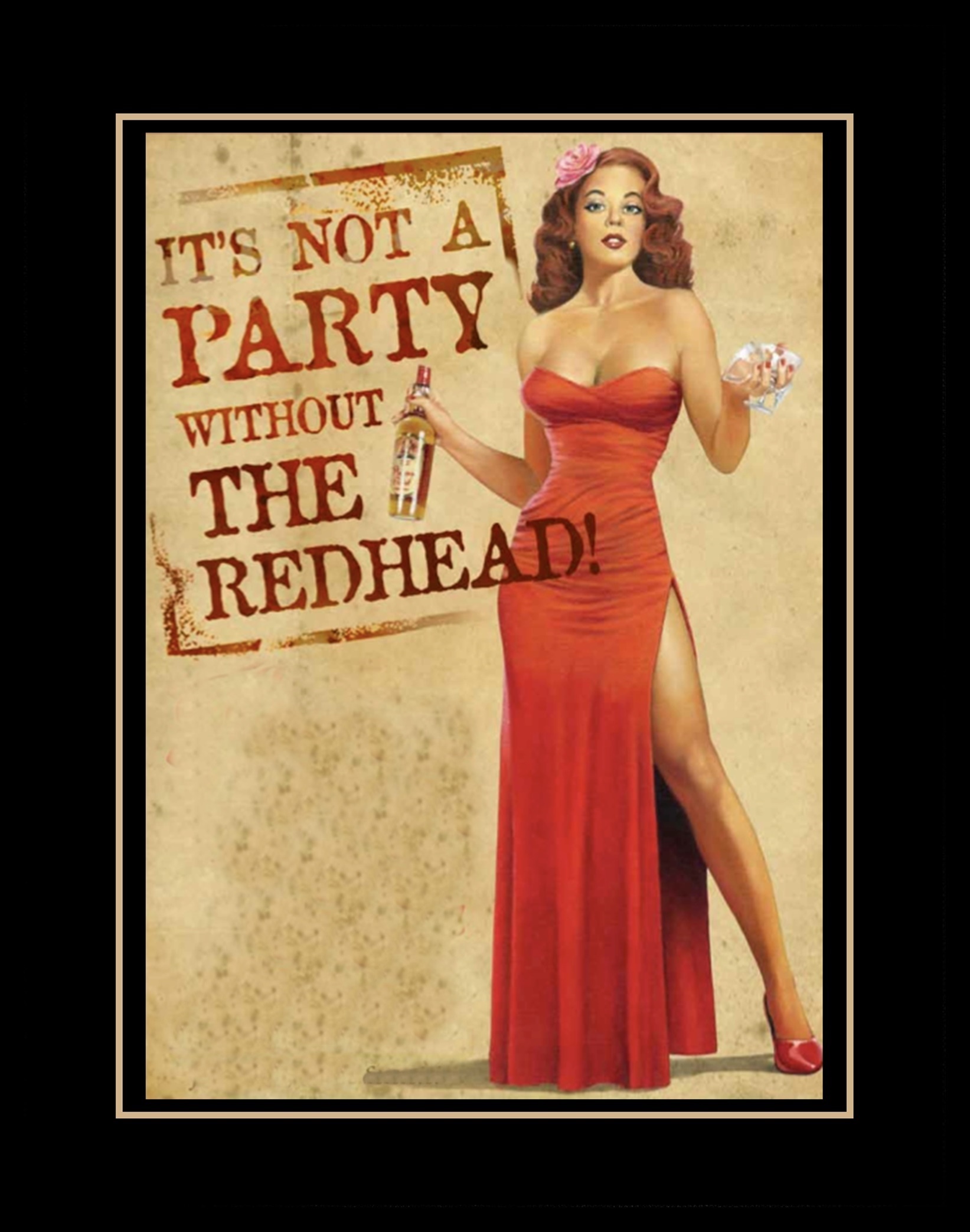 "It's not a party without the Redhead" Party Poster, Panama Red Rum Bar Wall Art.