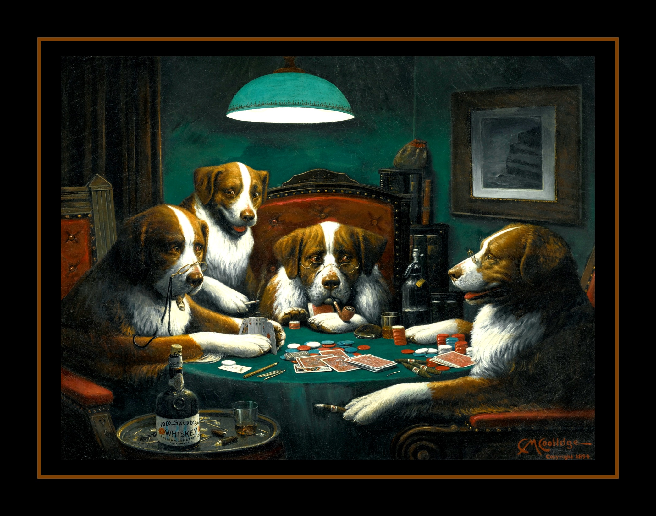 Funny Poker Poster, Dogs Playing Cards Art Print, Humorous Dog Poker Poster.