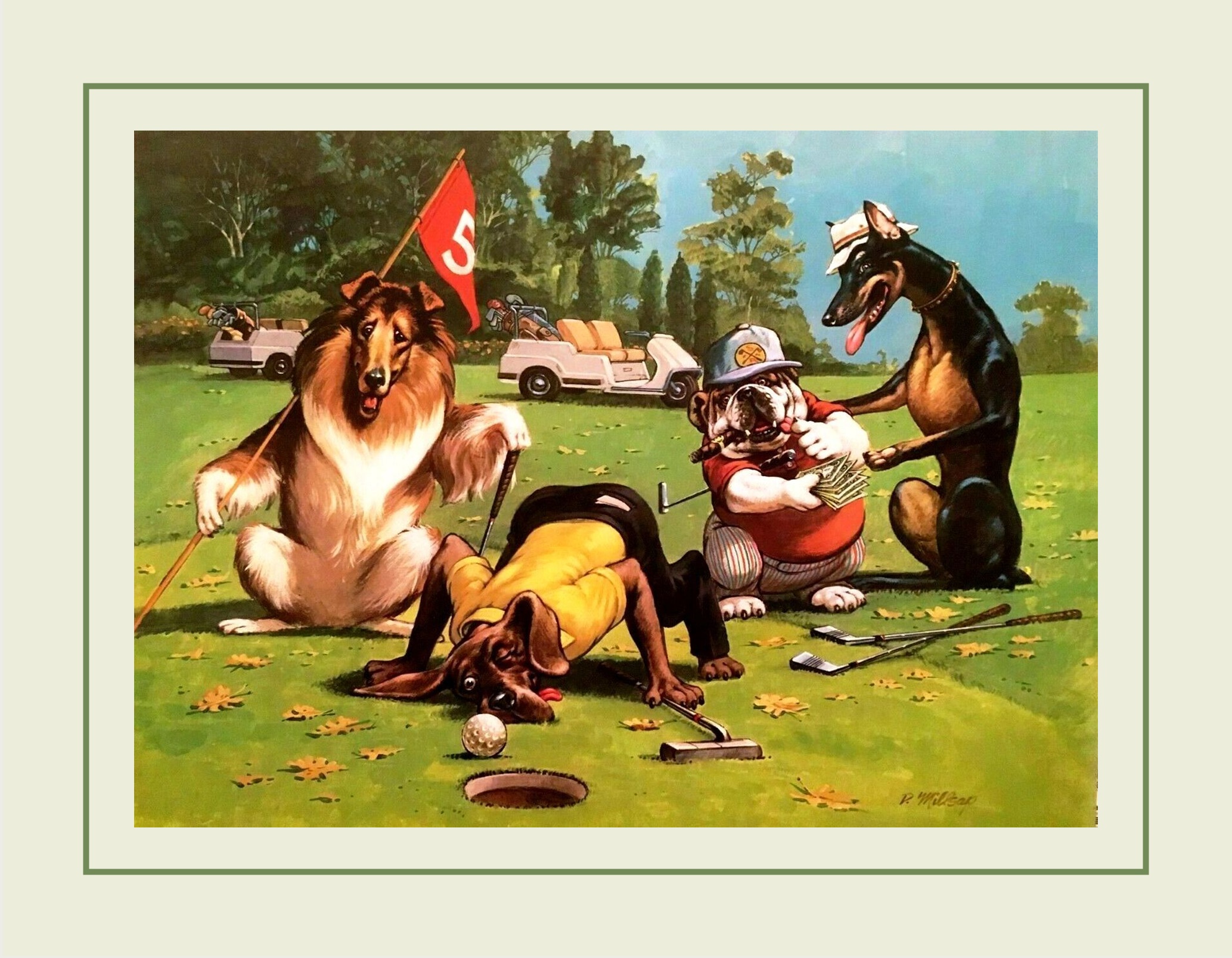 Funny Dog Golf Poster Print, Humorous Dogs Playing Golf Wall Art Decor Gift