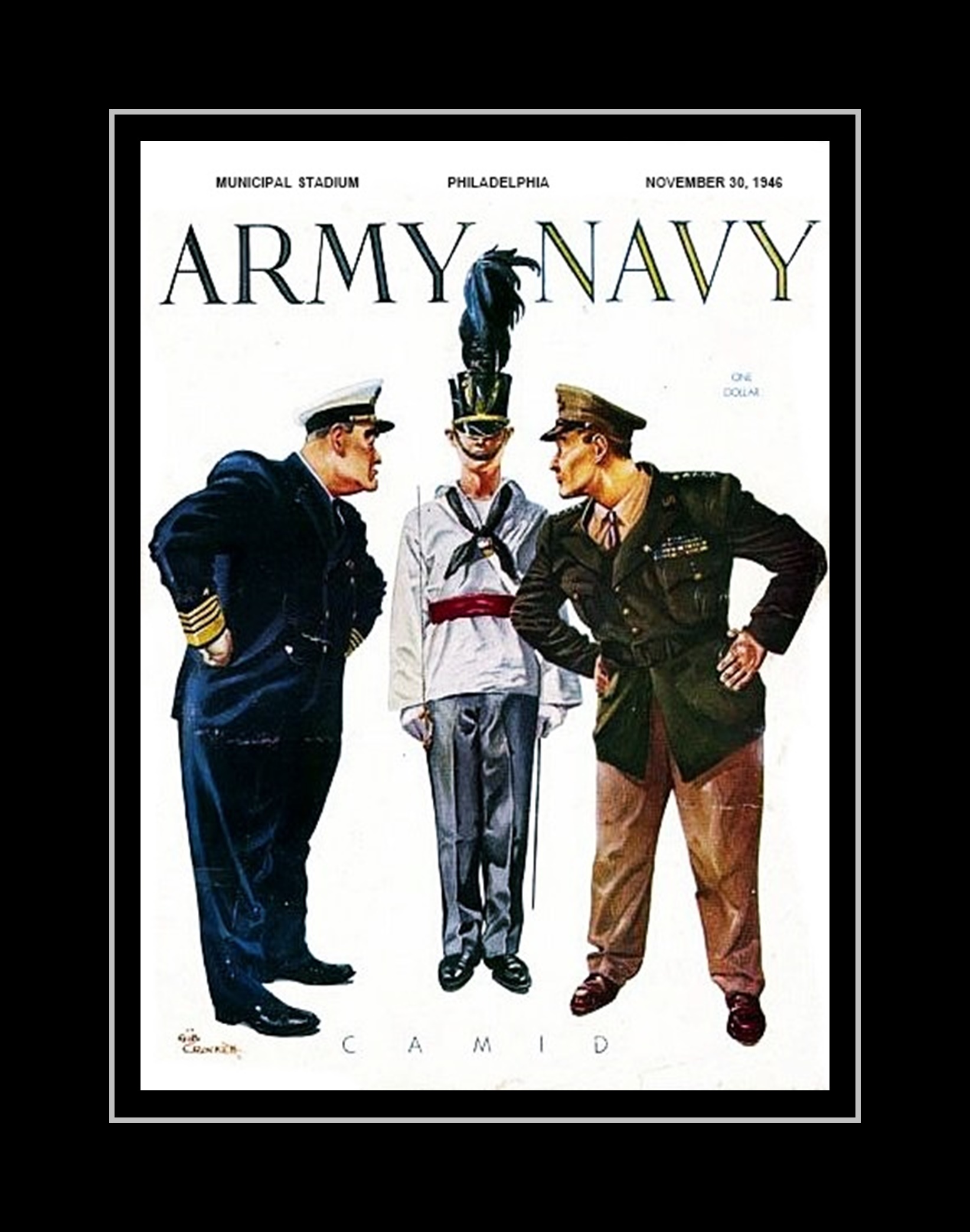 This Vintage Army Navy Football Program Wall Art .is a lasting, memorable gift for Dads, Granddads, Fathers, Uncles, Brothers, Husbands, veterans or any Army-Navy football fan. It will look great in any office, den, sports room, man cave or home bar.