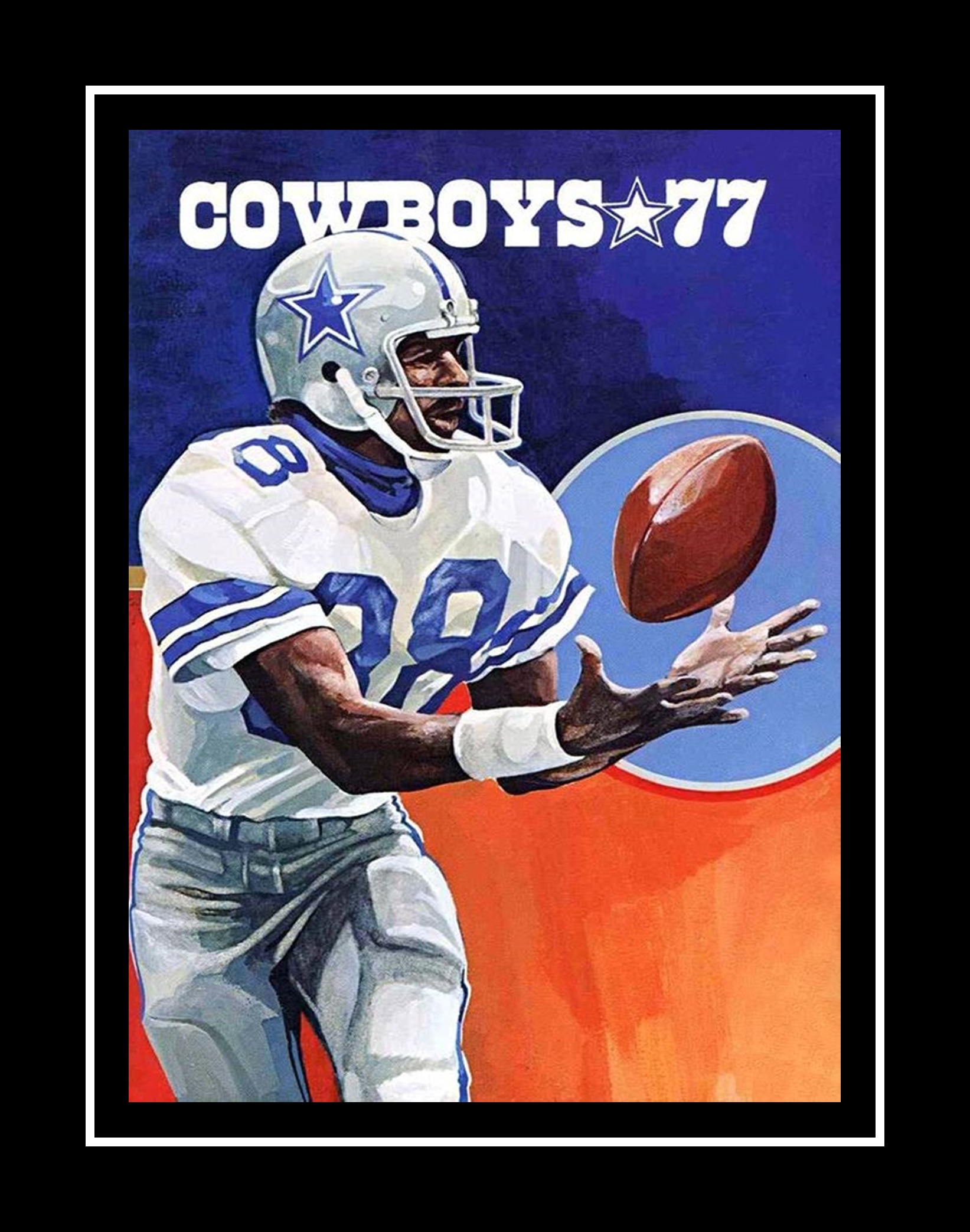A vintage Dallas Football Poster featuring the 1977 Yearbook cover is ll Art at it's finest. A lasting gift for any Cowboys fan. It will look great in your office, sports room, man cave or home bar.