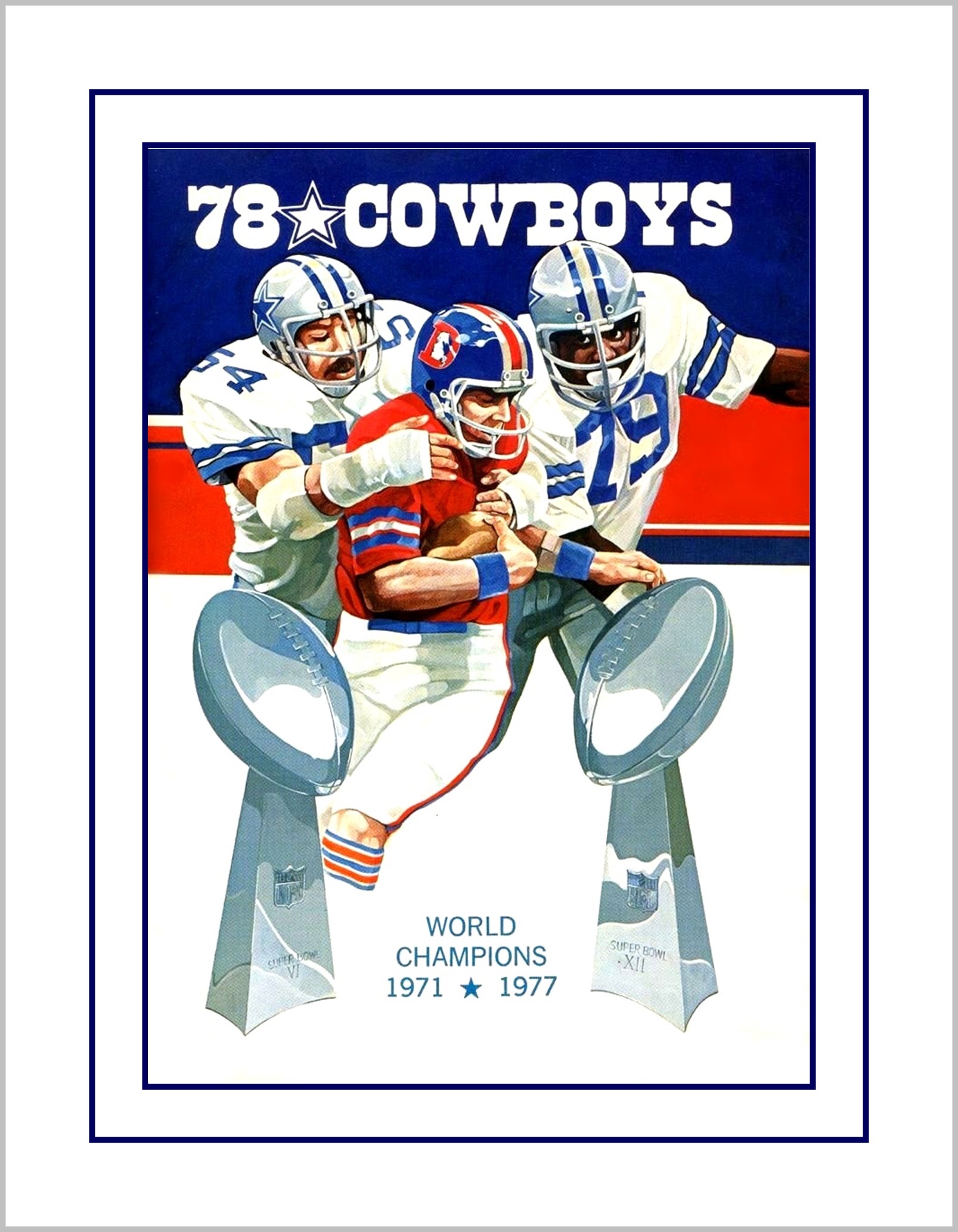 A vintage Dallas Football Poster featuring the 1978 Yearbook cover is Wall Art at it's finest. A lasting gift for any Cowboys fan. It will look great in your office, sports room, man cave or home bar.
