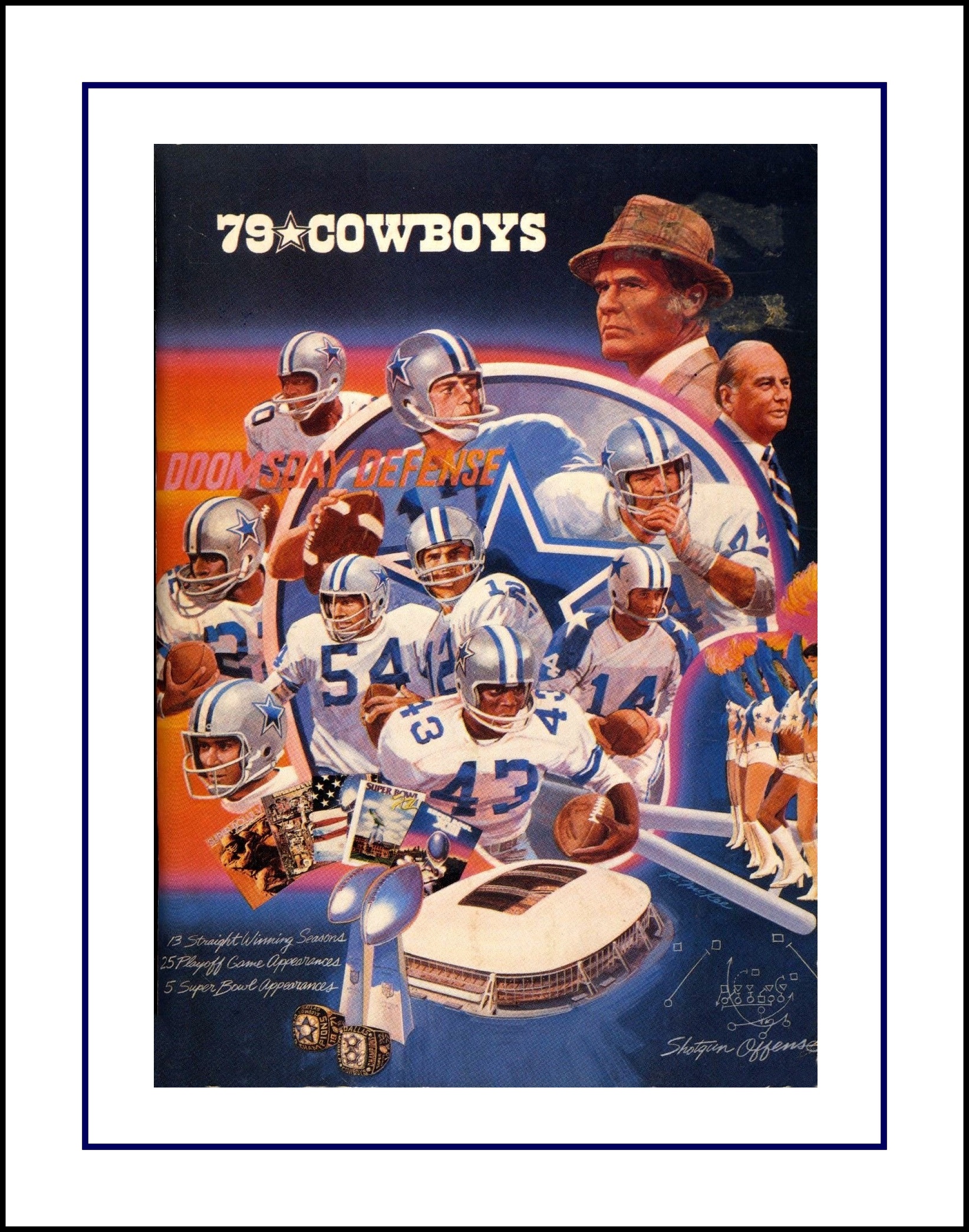 A vintage Dallas Football Poster featuring the 1979 Yearbook/Media Guide cover is a lasting gift for any Cowboys fan. It will look great in your office, sports room, man cave or home bar.