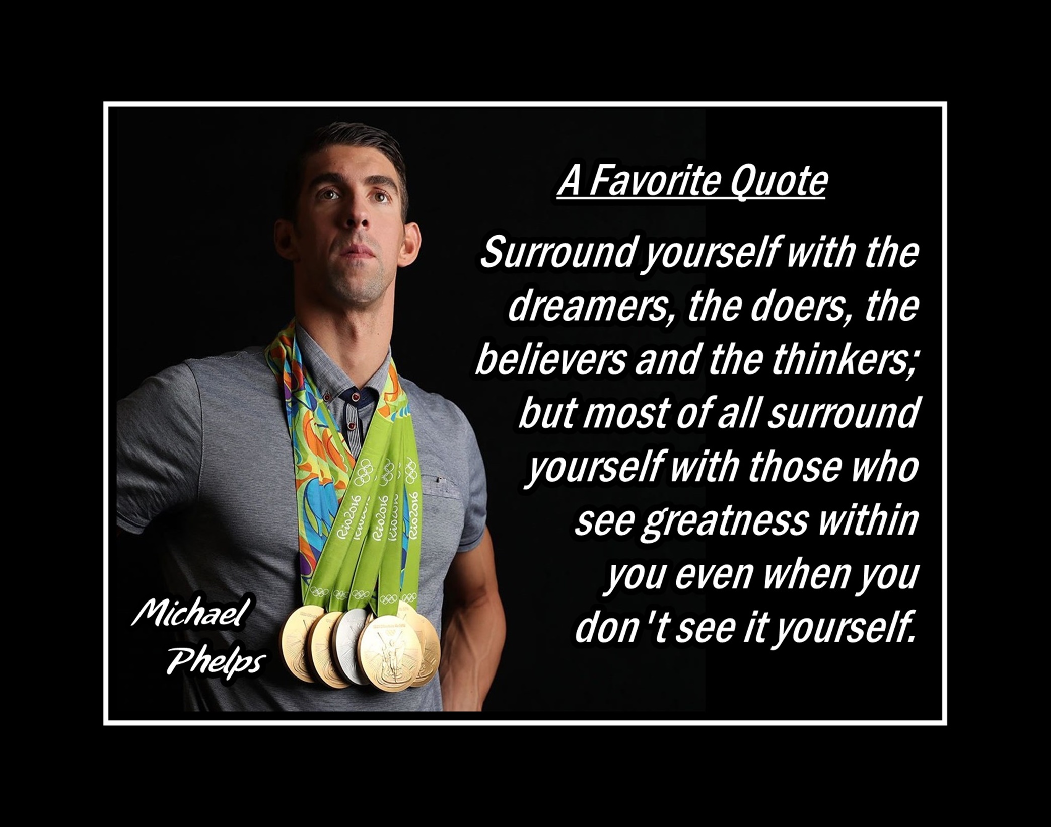 Inspirational Michael Phelps Swimming "Surround Yourself" Quote Poster Print #6, Wall Art Gift Motivational Swimmer Gift