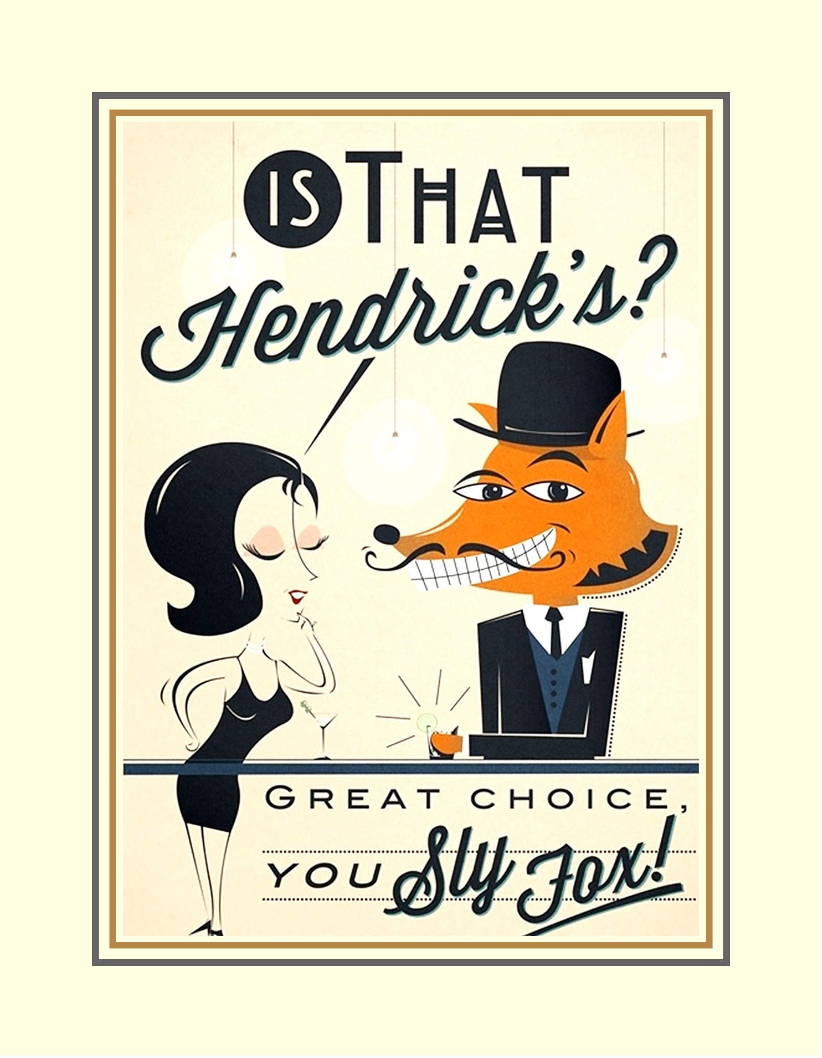 Hendricks Sly Fox Wall Art Poster Print, Home Bar Wall Decor