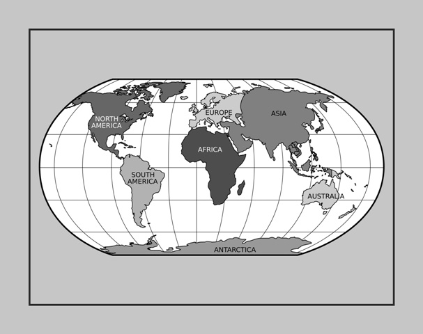 World Map Poster Print Wall Art White on Gray Decor