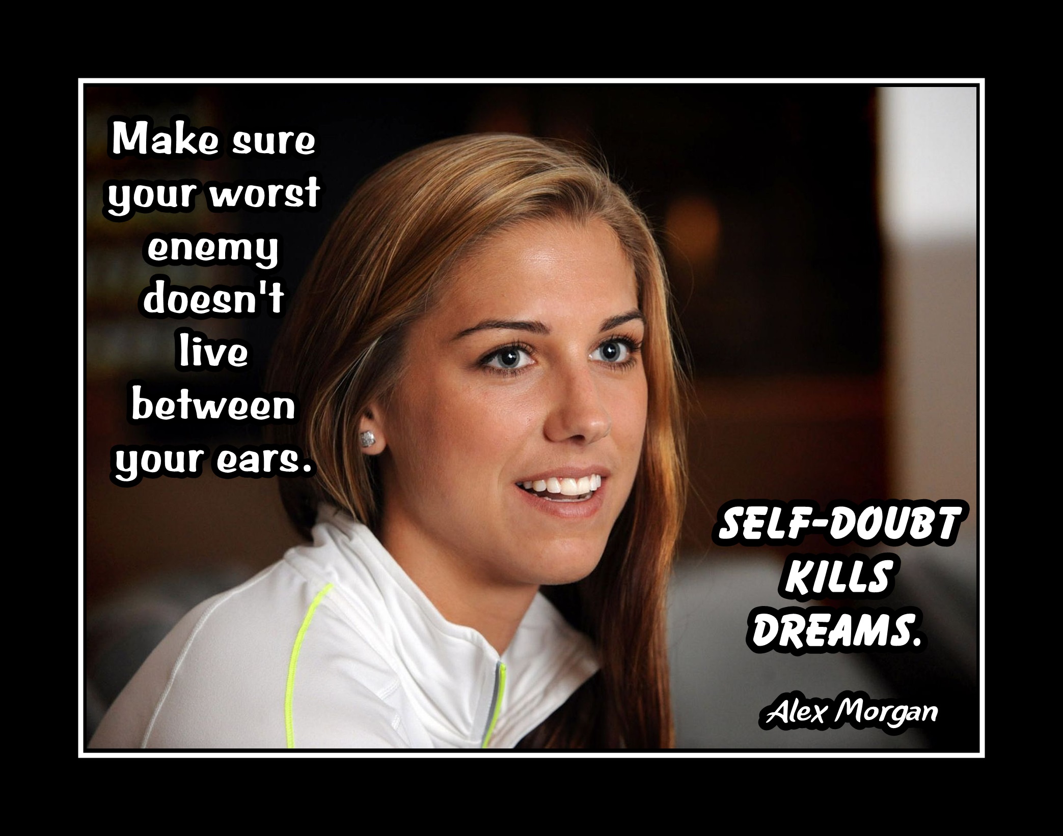 Inspirational Alex Morgan Poster #9, Soccer Motivation Quote Wall Art Gift "Self Doubt Kills Dreams"