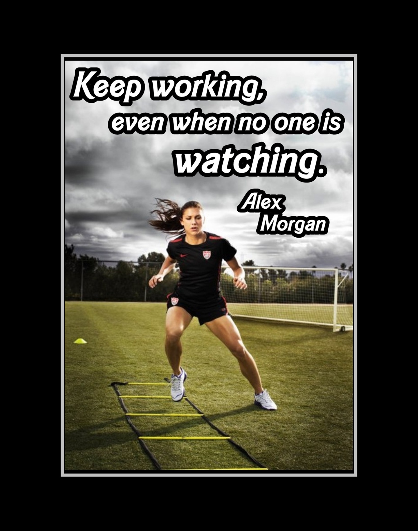 Inspirational Alex Morgan Poster #12, Soccer Motivation Quote Wall Art Gift "Keep Working"