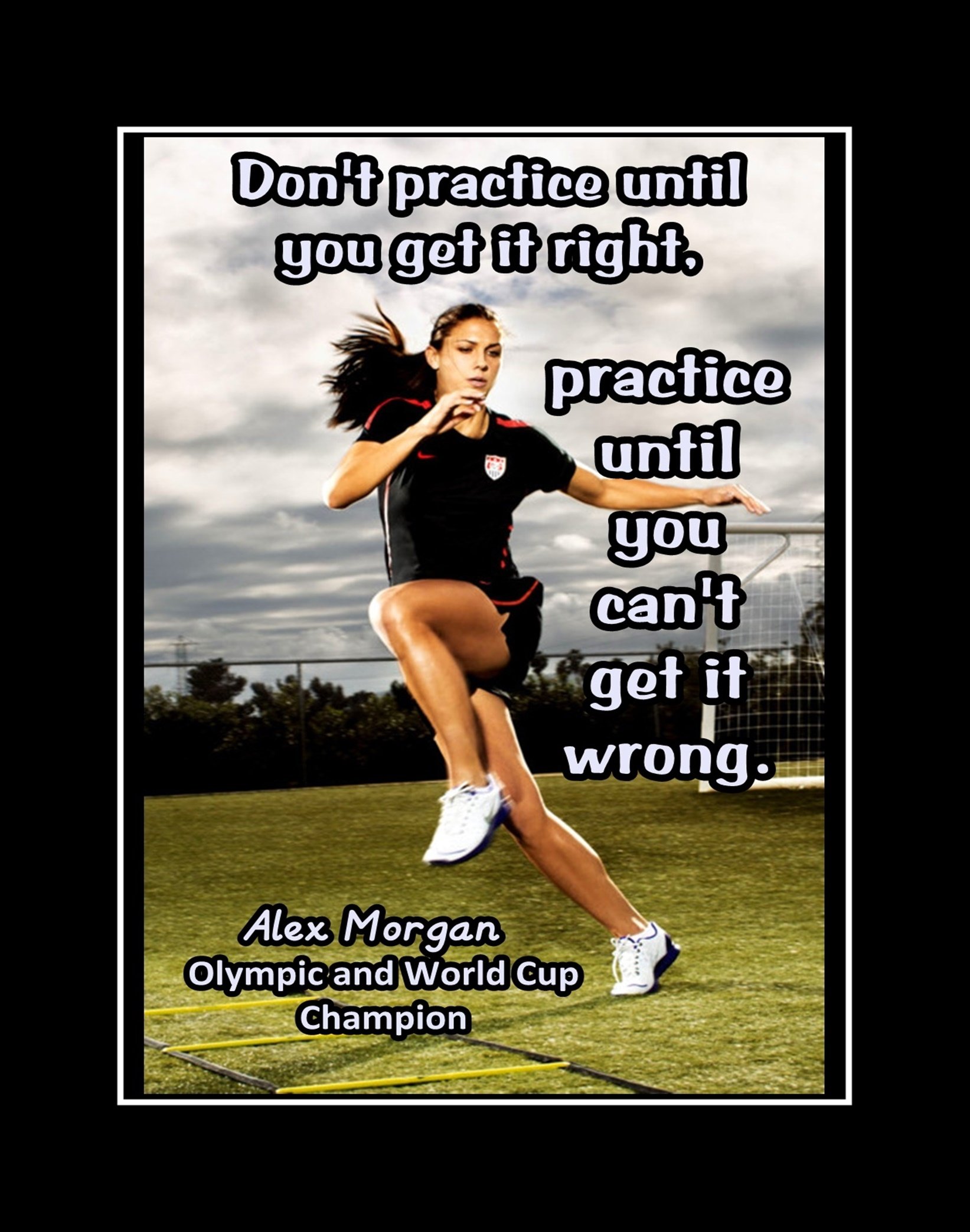 Inspirational Alex Morgan Poster #14, Soccer Motivation Quote Wall Art Gift "Practice Until You Can't Get Wrong"