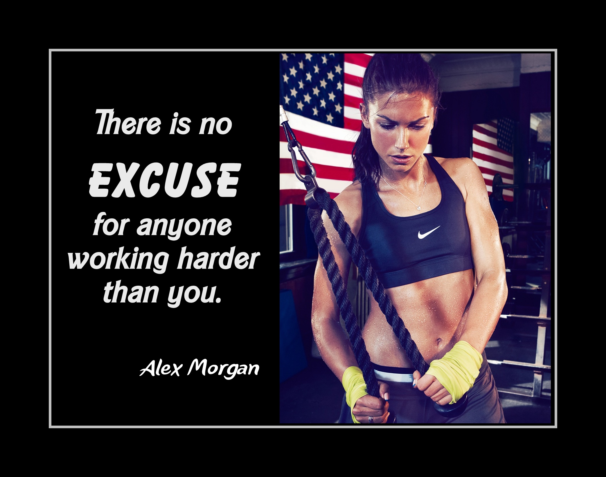 Inspirational Alex Morgan Poster #26, Soccer Motivation Quote Wall Art Gift "No Excuse"