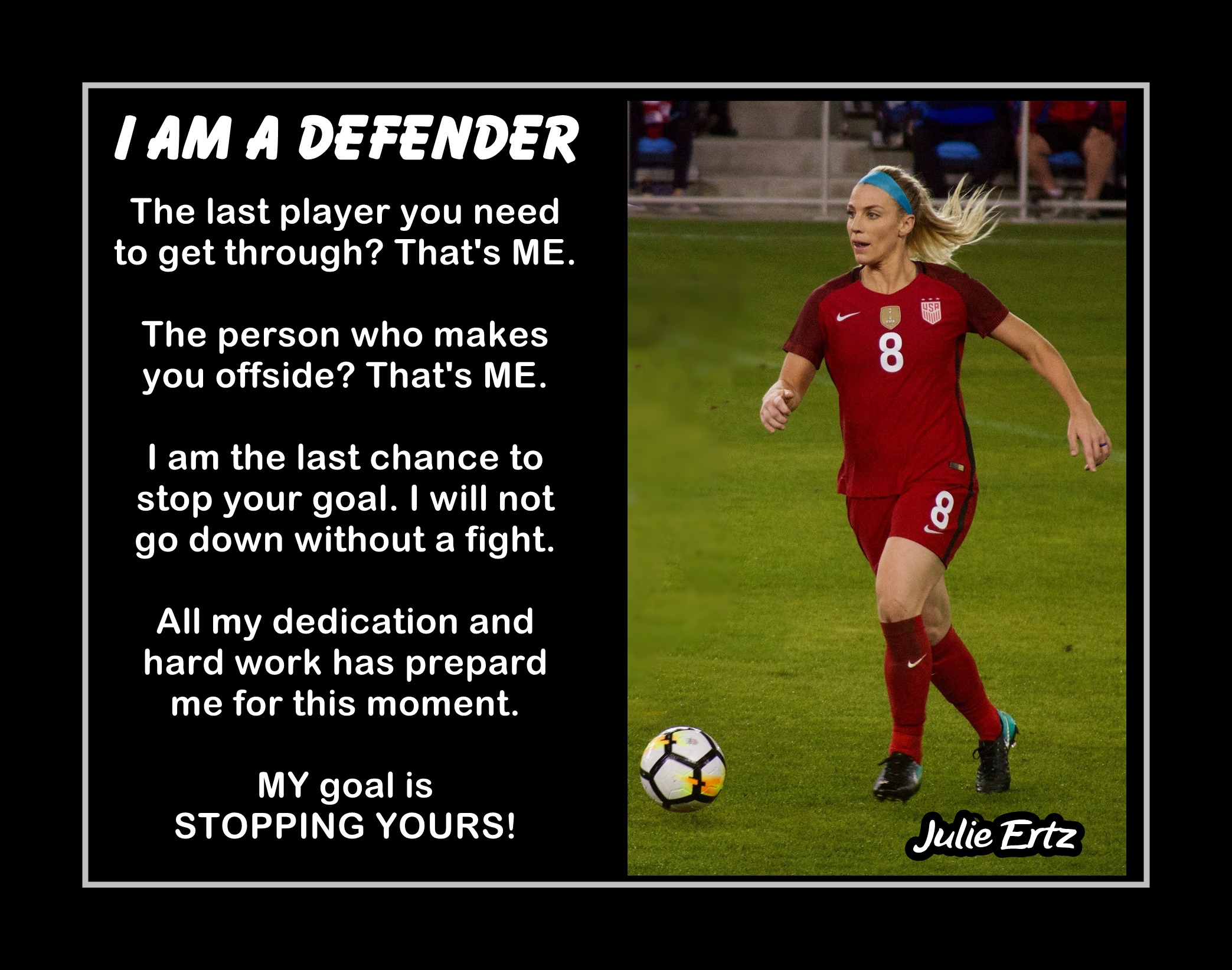 Inspirational Julie Ertz Soccer Motivation Quote Poster #4, Daughter Wall Art Gift I Am A Defender Soccer Wall Decor Red