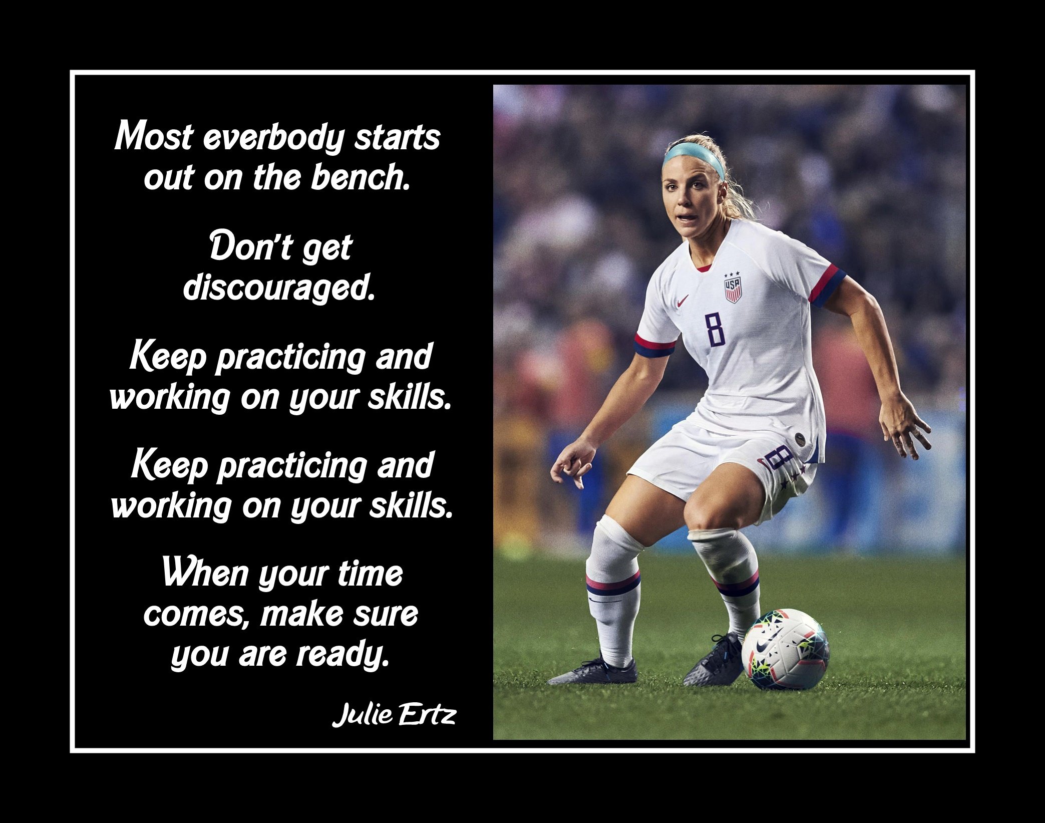 Inspirational Julie Ertz Poster #2 , Soccer Motivation Quote Wall Art Gift 'Everyboby starts out on the bench'