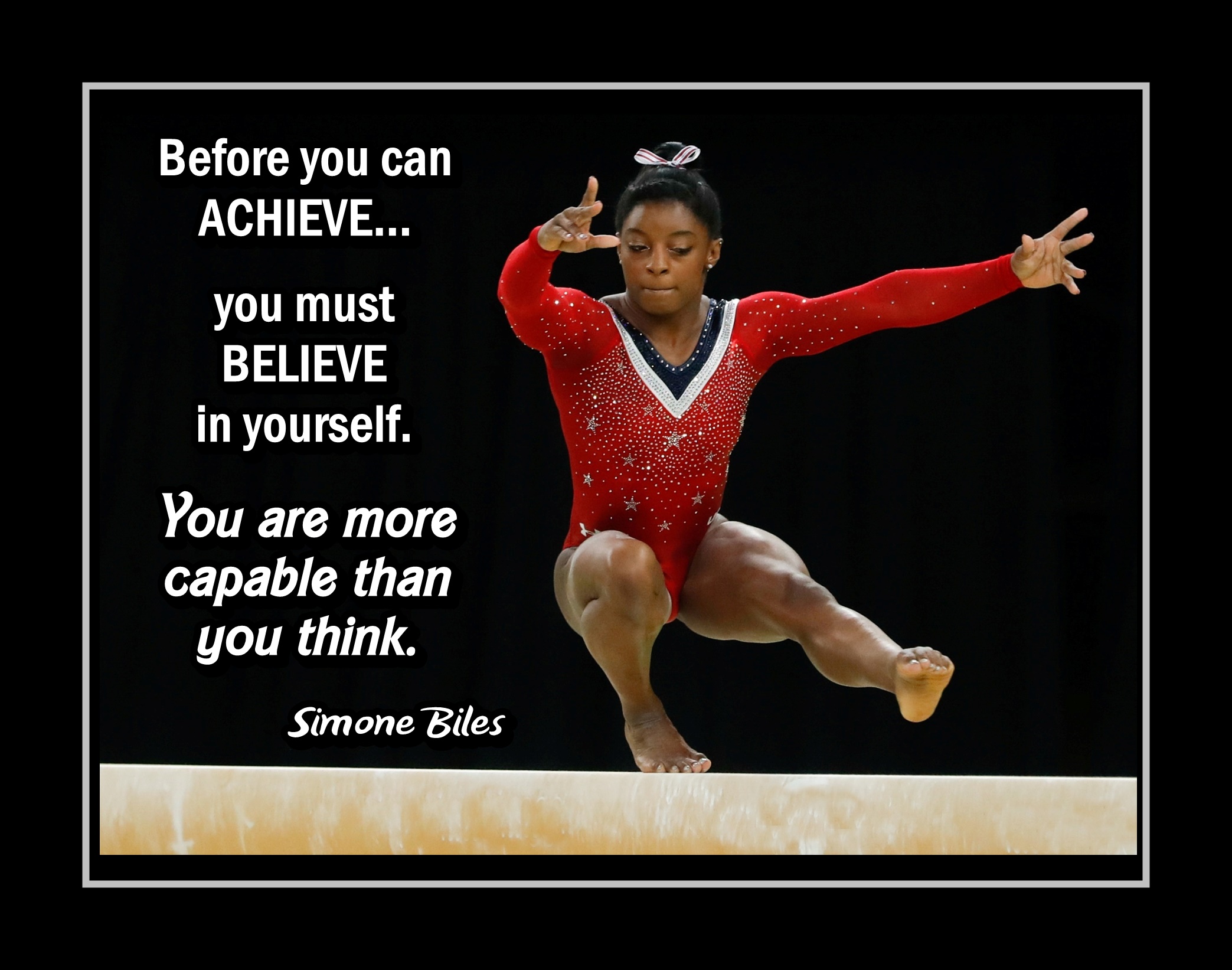Simone Biles Inspirational Gymnastics Quote Poster Champion Gymnast Wall Art Gift Believe & Achieve
