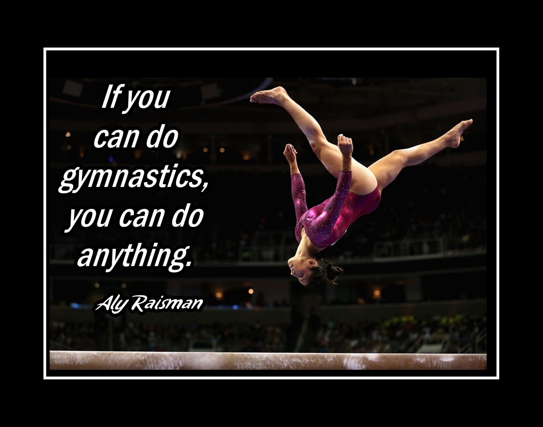 Motivational Gymnastics Poster. Inspirational Aly Raisman Quote Wall Art is an inspiring, lasting gift for any gymnast. It is certain to motivate and encourage. A stimulating gift suitable for daughters, granddaughters, nieces, friends and teammates.