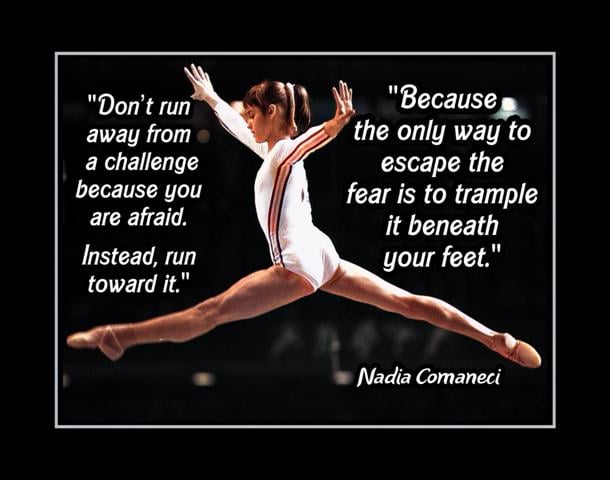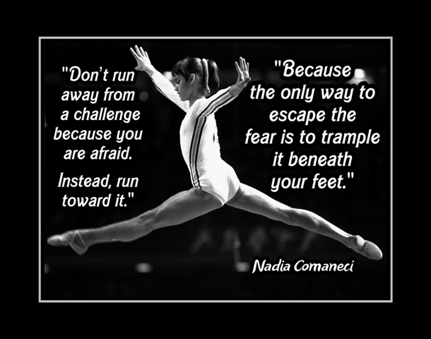 Nadia Comaneci Inspirational Gymnastics "Escape Fear" Quote Poster, Wall Art Gft