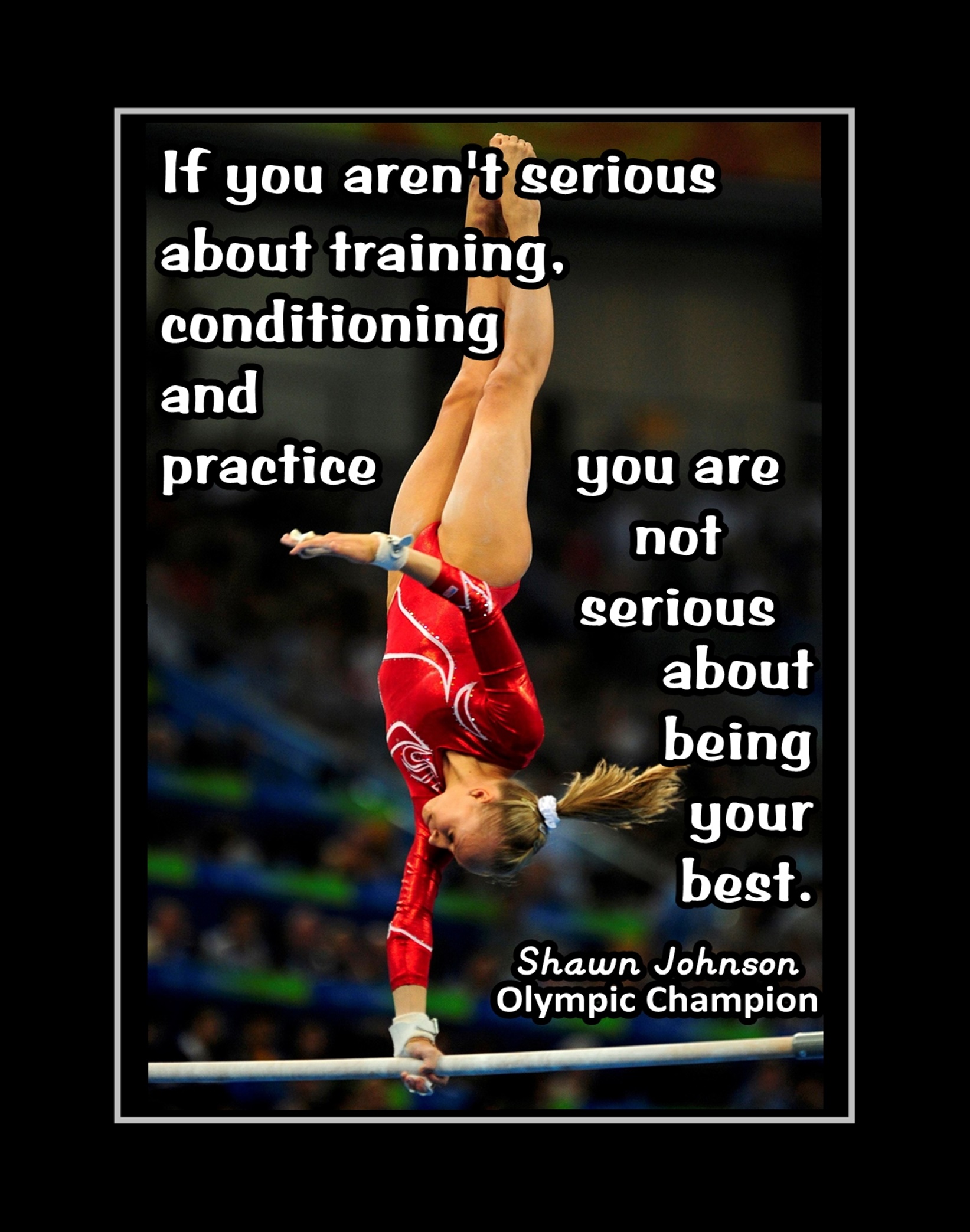 Motivational Gymnastics Poster. Inspirational Shawn Johnson Quote Wall Art is an inspiring, lasting gift for any gymnast. It is certain to motivate and encourage. Suitable for daughters, granddaughters, nieces, friends and teammates.