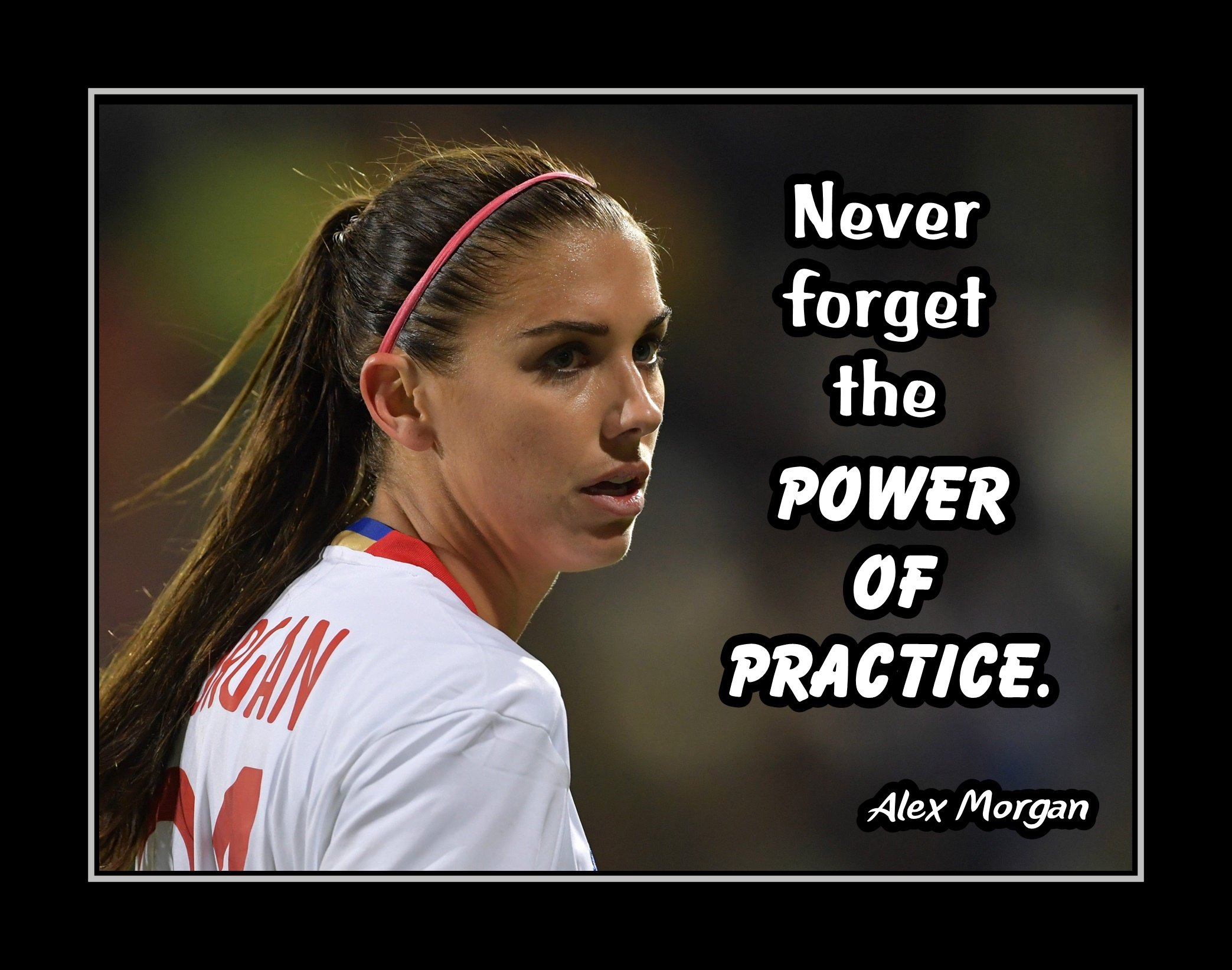 Inspirational Alex Morgan Poster #15, Soccer Motivation Quote Wall Art Gift "Power of Practice"