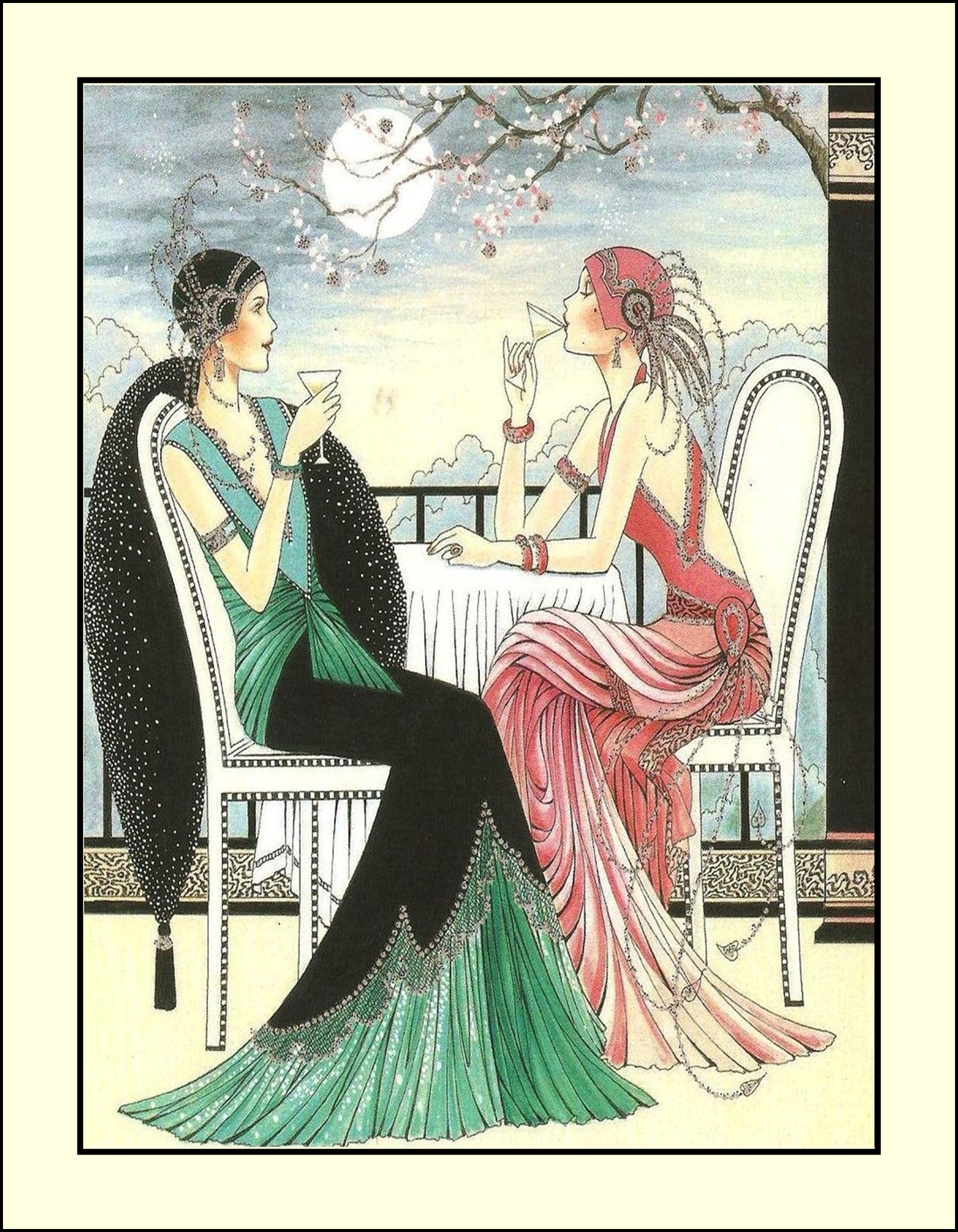 Vintage 1920s Cafe Flapper Girls Duo Poster Print,Speakeasy bar Wall Art Decor, Fashion, Roaring 20s Style