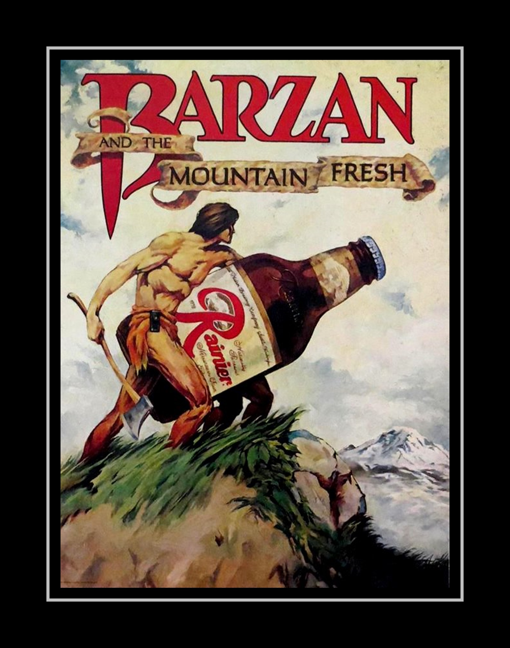 Vintage Rainier Beer Poster Print, BARZAN Beer Man Bigfoot Sasquatch Yeti Bar Wall Art
