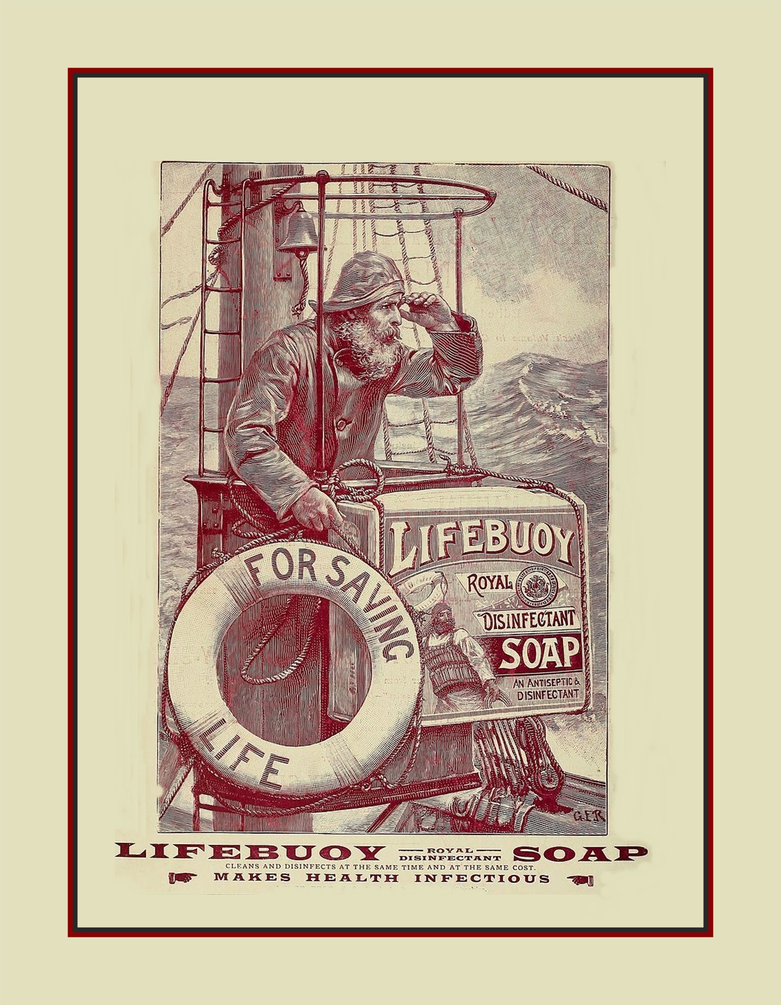 Vintage Mens LifeBuoy Soap Sailor Poster Print, Barber, Bathroom Wall Art