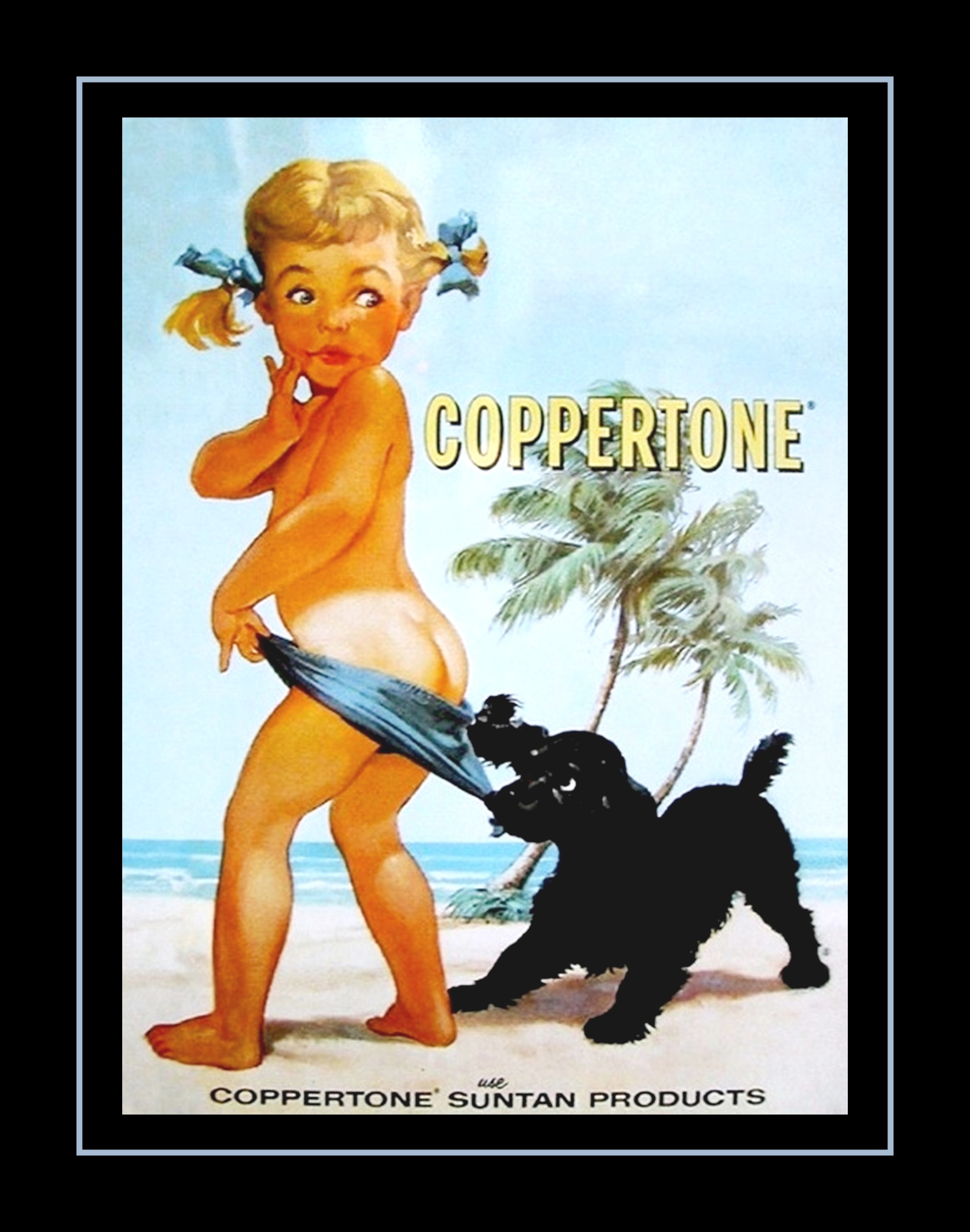 Vintage Iconic Coppertone Poster #3 Black Border Bare Bottom Girl Wall Art Bathroom Wall Decor