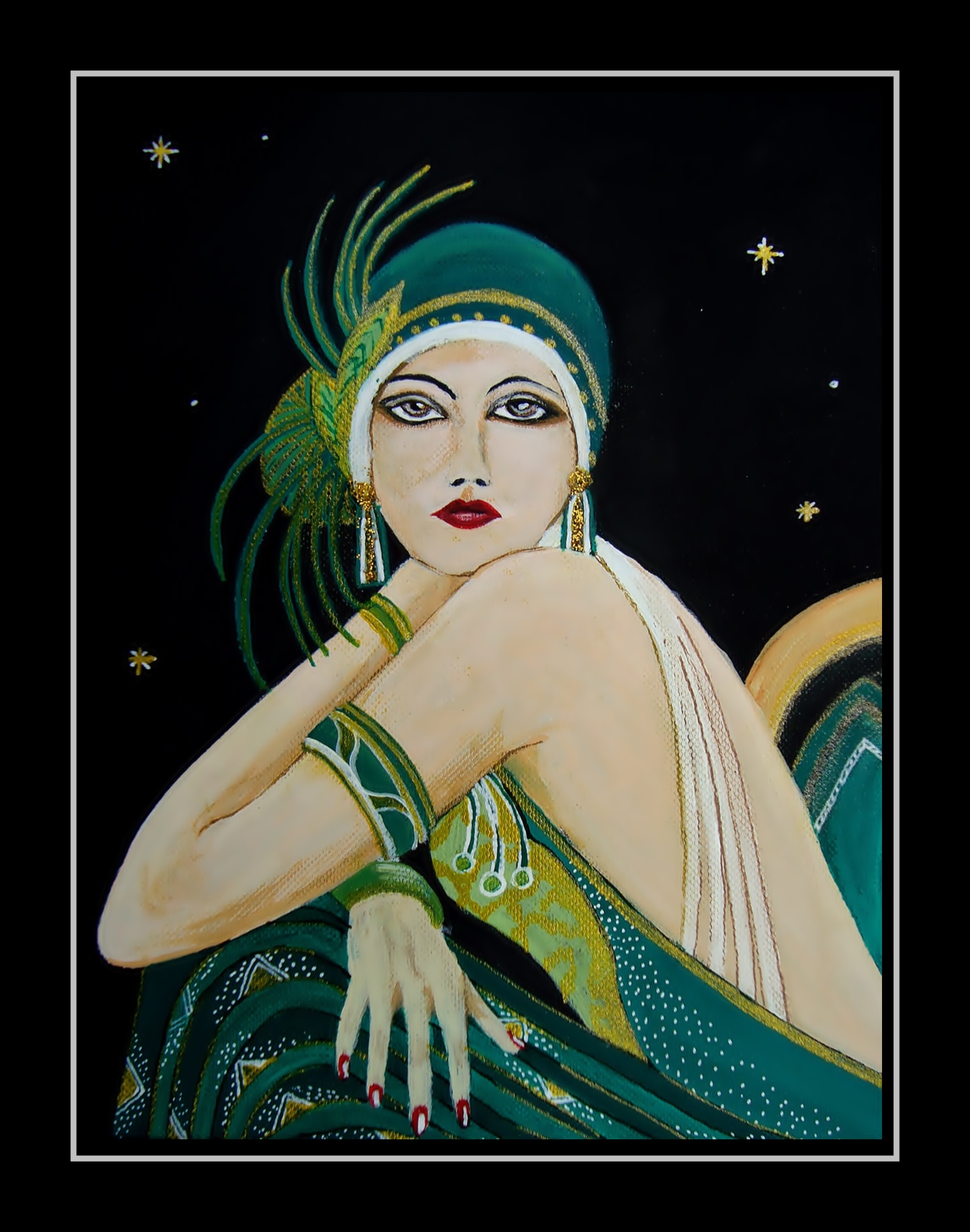 Vintage 1920s Green Teal Flapper Girl Speakeasy Fashion, Roaring 20s Style Wall Art Print, Gift